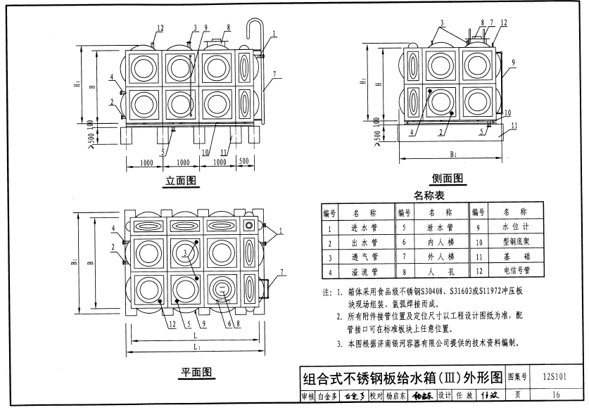 不銹鋼水箱模塊詳細說明,參考國家建筑圖集12S101